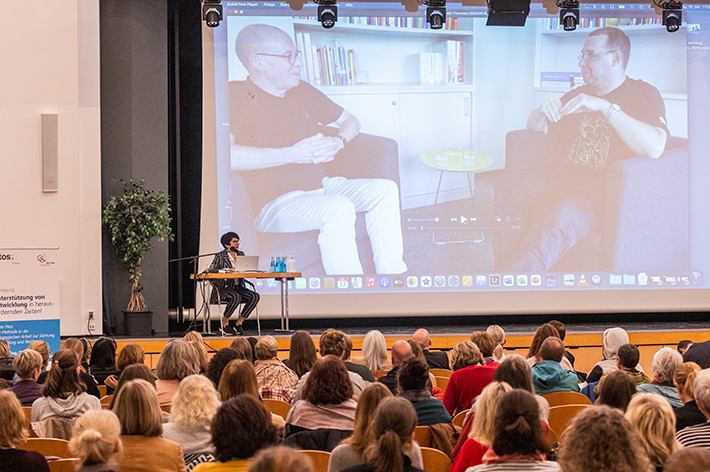 Im Oktober 2022 konnten wir, in Kooperation mit dem Kreis Groß-Gerau, unsere vierte Marte Meo Tagung unter dem Titel „Unterstützung von Entwicklung in herausfordernden Zeiten – Marte Meo: Eine Methode in der pädagogischen Arbeit zur Stärkung von Bindung und Resilienz“, in Gernsheim durchführen. Maria Aarts stellte, gerade auch unter Berücksichtigung der Herausforderungen in der Pandemie, neue Entwicklungen aus dem weltweiten Marte Meo Netzwerk vor und supervidierte live die ersten Filme und Ergebnisse aus meinem Projekt „Kommunikationstraining für Menschen mit Beeinträchtigungen“ bei Vitos Teilhabe. Dr. Michael Hipp ergänzte in seinem Beitrag „Kindliche Entwicklung unter belastenden Bedingungen“ die Ausführungen von Maria Aarts um wesentliche Aspekte aus dem Blickwinkel eines Arztes für Neurologie, Psychiatrie und Psychotherapie. Eine inspirierende Tagung, die den wiederum 300 Teilnehmerinnen und Teilnehmern viele Anregungen und Impulse für ihre tägliche Arbeit vermitteln konnte.